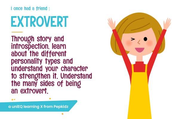 Throughout the session, the student categorises different personalities through a storyline, introspection, and activities to identify their personality type. They realise the meaning of being an extrovert, the pros and cons of being one.